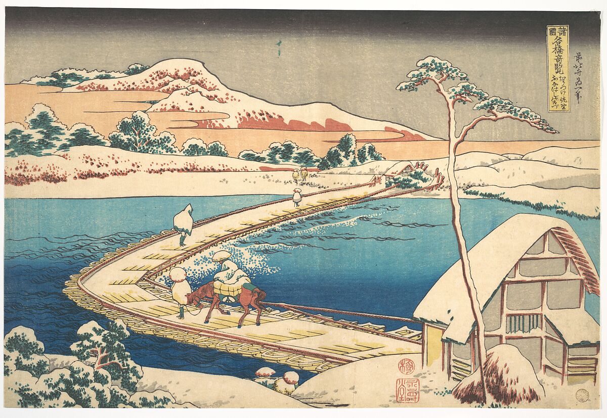 - Title: Old View of the Boat-bridge at Sano in Kōzuke Province (Kōzuke Sano funabashi no kozu), from the series Remarkable Views of Bridges in Various Provinces (Shokoku meikyō kiran)