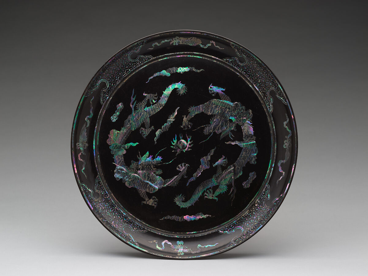 - Medium: Mother-of-pearl inlay on black lacquer