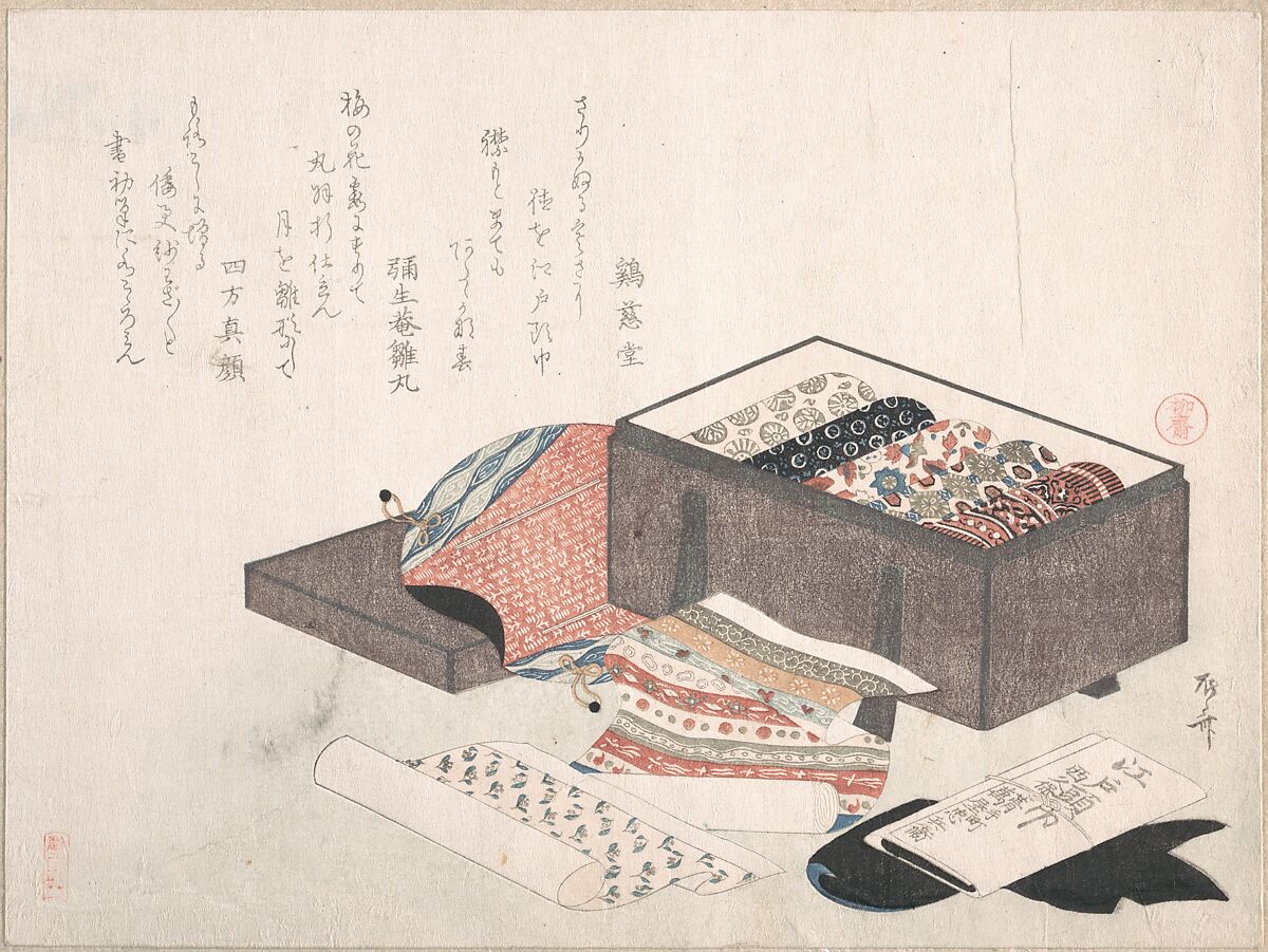 - Medium: Woodblock print (surimono); ink and color on paper