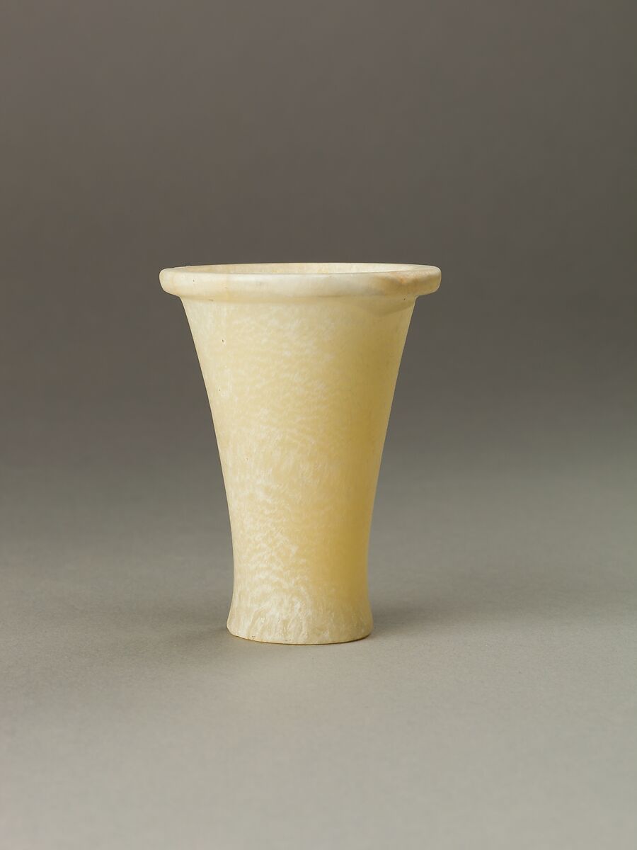 26.7.1439–.1442 are ointment jars that were found scattered at the bottom of a tomb shaft at Thebes. Nearby was a box belonging to a man named Kemeni (26.7.1438). Kemeni's box has a drawer with spaces for eight small ointment jars, so it is assumed that the box and jars go together.
