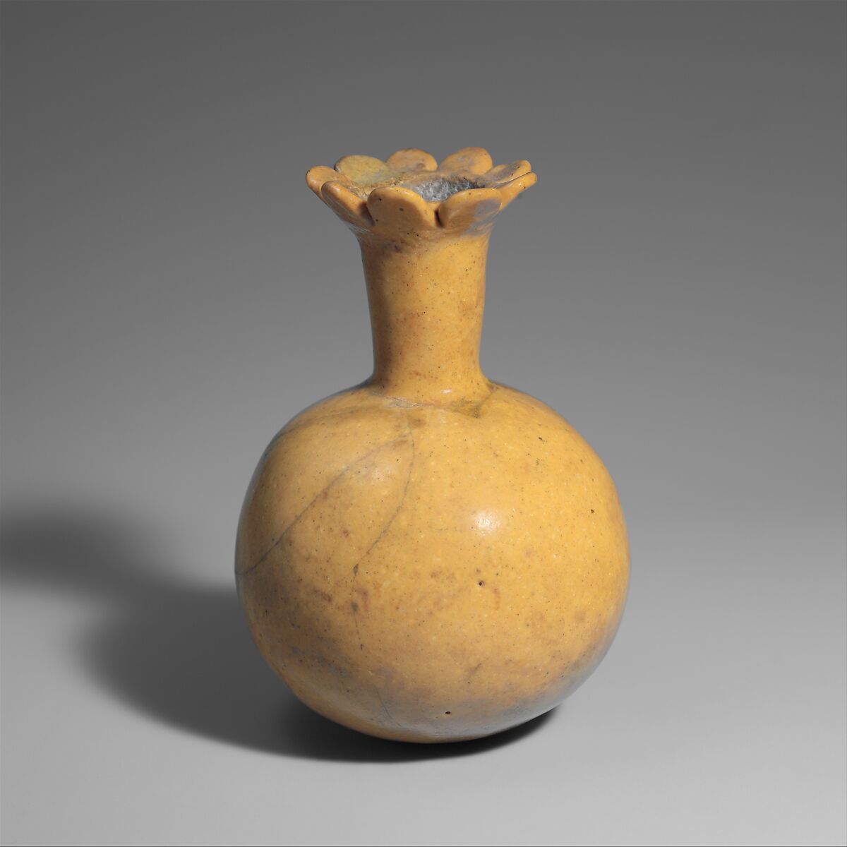 Pomegranate juice was prized as a drink, but it can also be used as an astringent to shrink tissues and reduce swelling in wounds. This jar probably held juice for consumption as a drink. A smaller, green jar in the collection (44.4.52) depicts the fruit in its unripened state, when the juice is too sour to drink, and may have juice intended for medicinal purposes.
