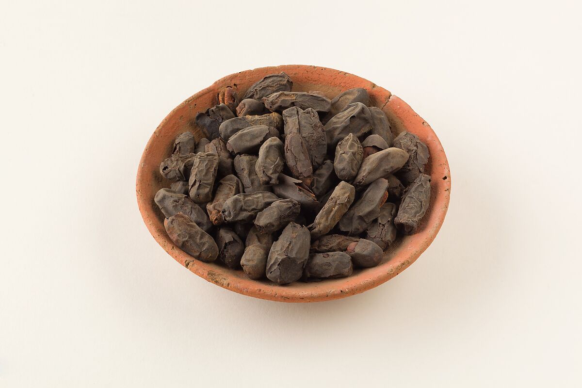 In Hatnefer's tomb (36.3.1) there was a large oval basket (36.3.57) which contained food for the spirits of Hatnefer, her husband, Ramose, and six un-named family members buried there. Inside the basket were dates (shown here and in 36.3.64), raisins (36.3.65), loaves of bread (36.3.73), and some kind of bread pudding (36.3.81).