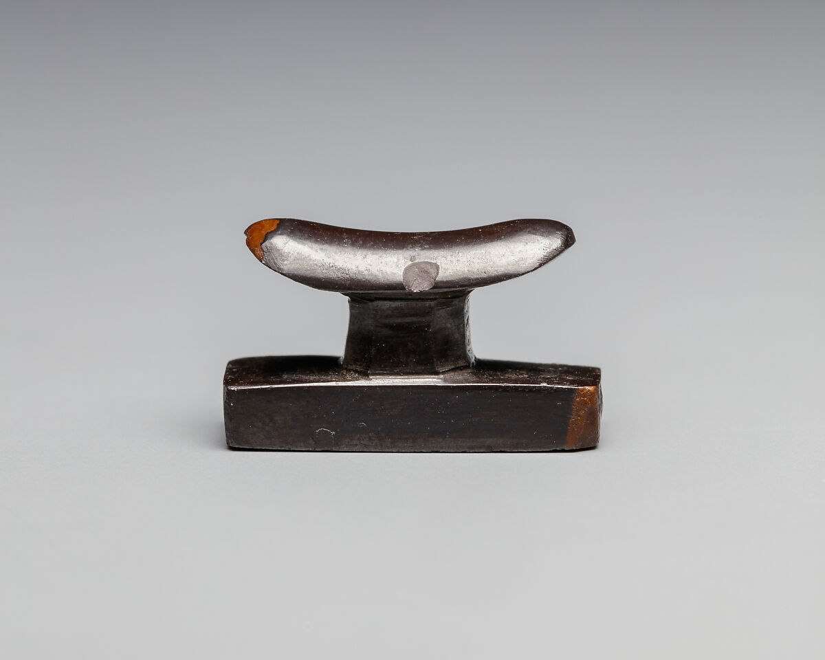 Full-size headrests supported the neck of a sleeping person and were often decorated with protective symbols; examples were also placed in the tomb. Headrest amulets were exclusively used as funerary amulets. In addition to their protective function, further meaning derived from the formal resemblance between the round head on the curved headrest and the sun rising between two hills, a powerful symbol of resurrection and rebirth for the ancient Egyptians. Headrest amulets were meant to protect the head of the deceased and reinsure his or her rebirth.