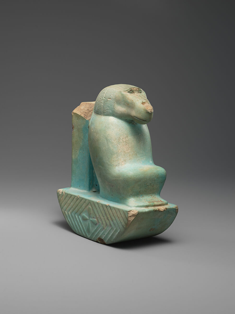 - Title: Figure of baboon on a basket and with a pillar (shebet offering)