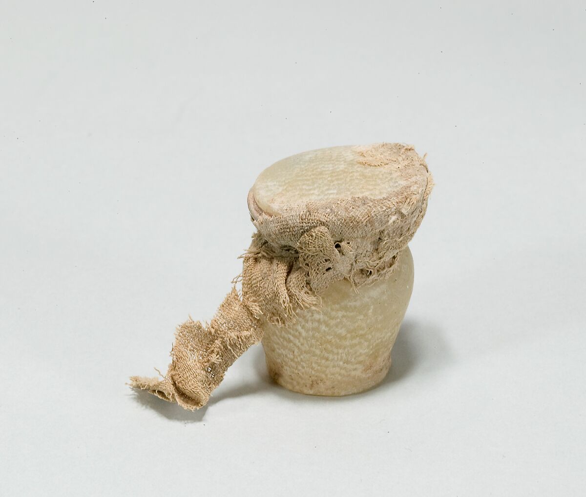 This cosmetic vessel was found in a "surface burial" in the area of the mastaba tomb of Senwosretankh at Lisht South. The subsidiary burials in this area appear to date from the Late Middle Kingdom to the early Second Intermediate Period. A cylinder with the name of King Amenemhat III (33.1.52), a late Middle Kingdom scarab (33.1.51) and a Tell el-Yahudiya juglet (now in Cairo, JE 60263) were discovered in some of these burials. The juglet has three zones of decoration, a type known from strata F and E3 at Tell el-Dab'a, that are generally dated to ca. 1710–1650 B.C.