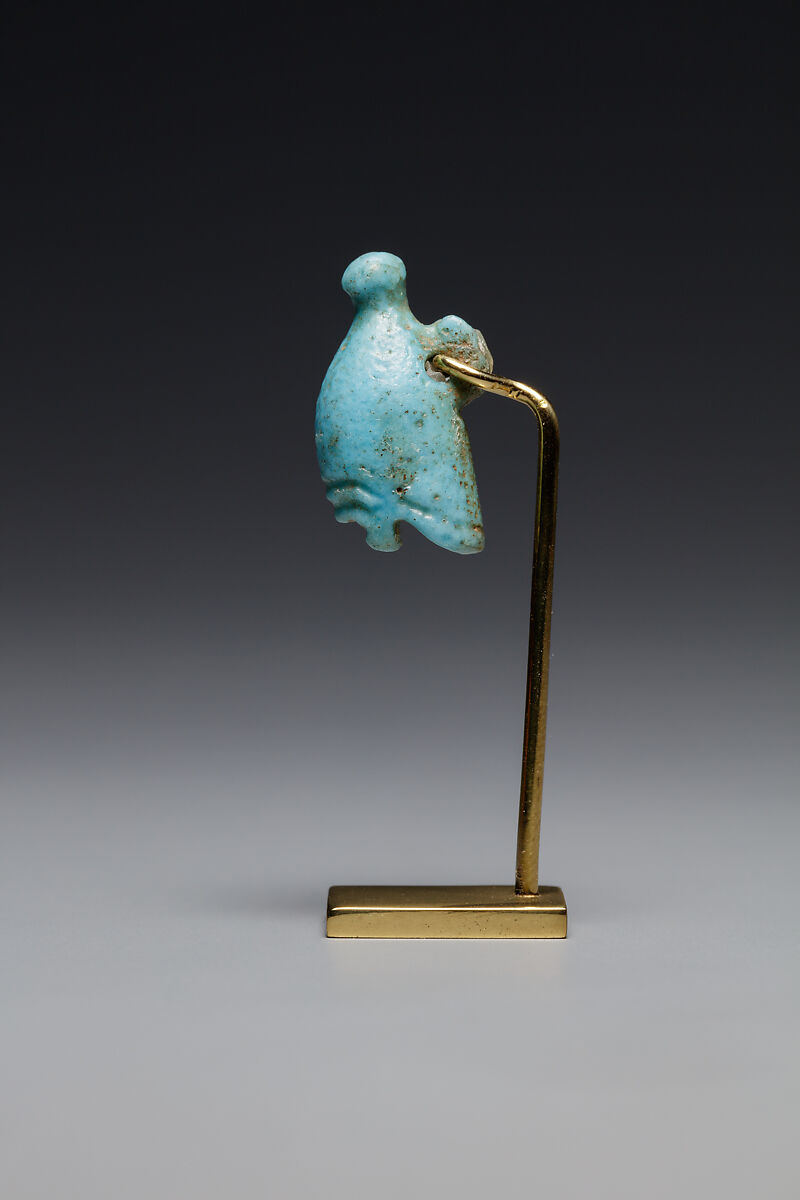 Crown amulets, whether representing the Upper Egyptian or Lower Egyptian crown (compare 10.130.1822), supplied the wearer with royal power. They bestowed royal status on the deceased, who was identified with the god Osiris, the king of the afterworld. Crowns themselves also bore great magical power.