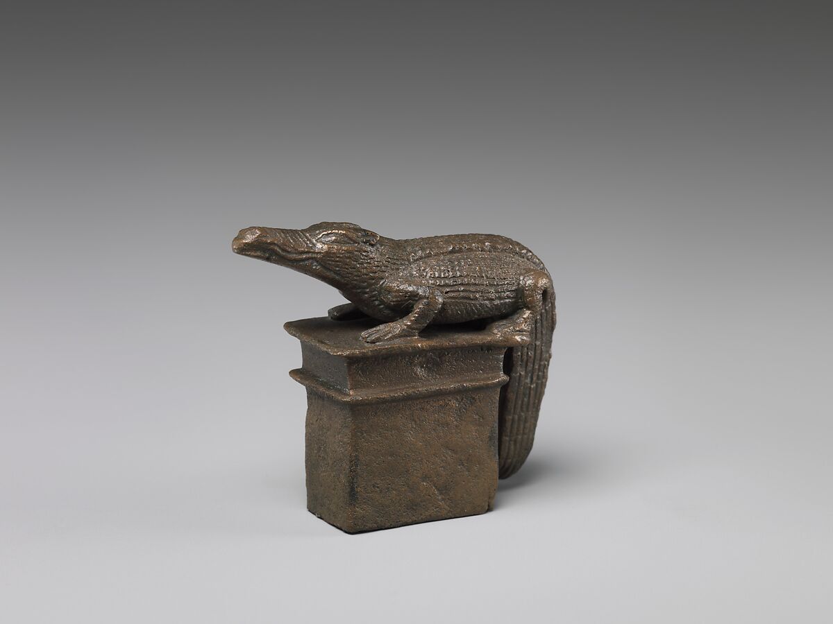 A crocodile on a shrine represents the god Sobek. Sobek was an important god throughout Egypt, and with important cult centers in both Upper Egypt and the Fayum.