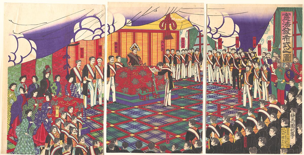 - Medium: Triptych of woodblock prints; ink and color on paper