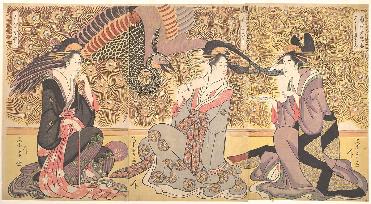 - Medium: Triptych of woodblock prints; ink and color on paper