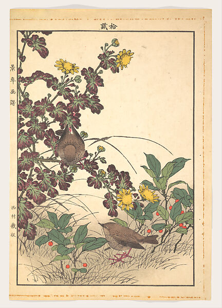 - Title: Two Birds and Crysanthemums, from Keinen kachō gafu (Keinen’s Flower-and-Bird Painting Manual)