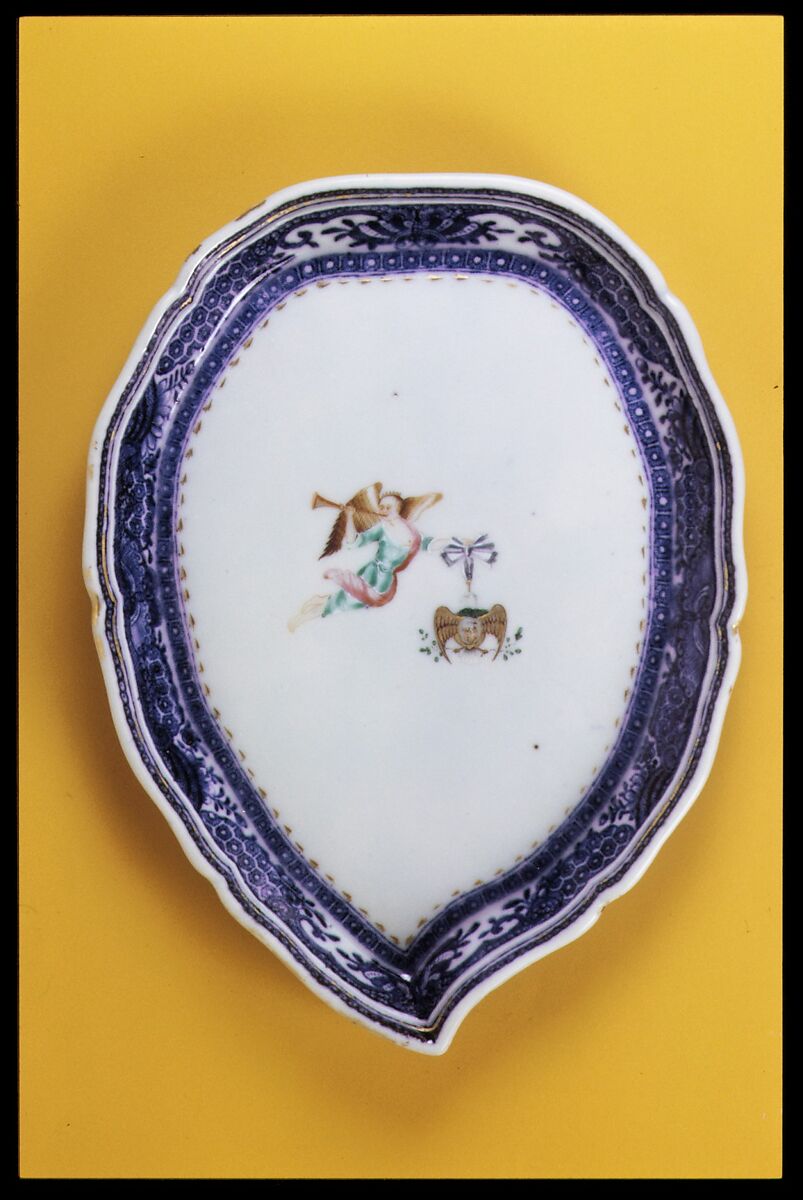 This pickle dish belongs to a set brought from China for General Washington in 1785, and decorated with the badge of the Society of the Cincinnati.