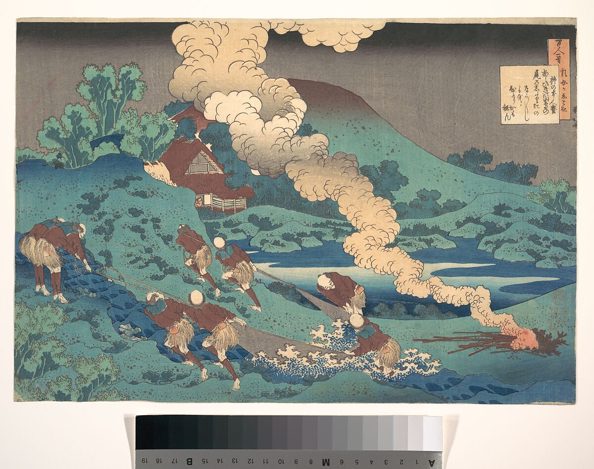 - Title: Poem by Kakinomoto Hitomaro, from the series One Hundred Poems Explained by the Nurse (Hyakunin isshu uba ga etoki)