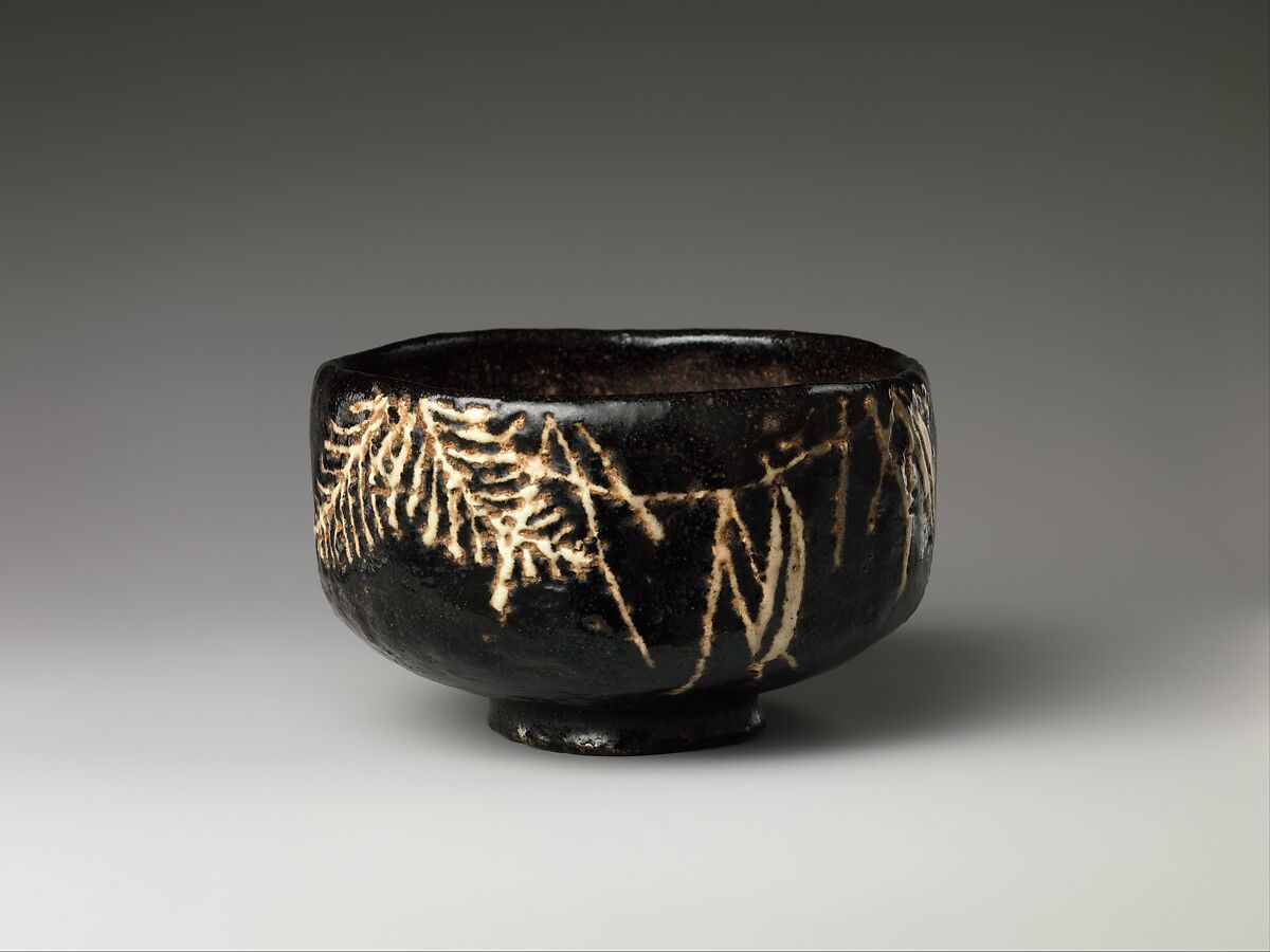 - Medium: Stoneware with black glaze and inlaid white slip (Kyoto ware)