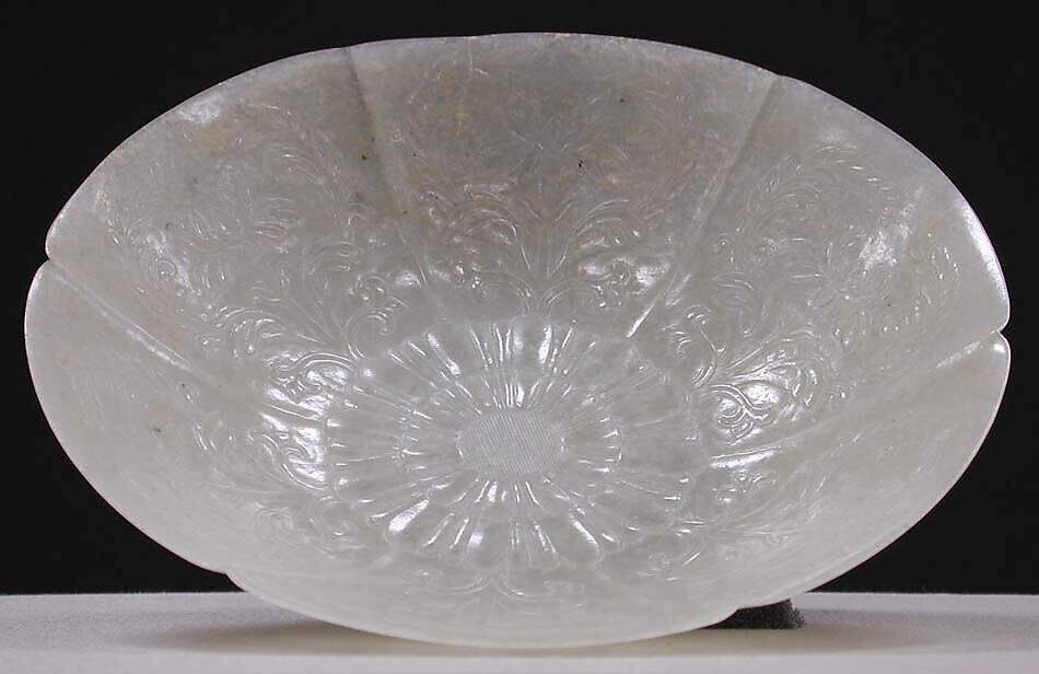 Mughal jades, made by Indian jade carvers of the Mughal Empire (1526–1858), were first brought to China during the eighteenth century as gifts to the Qianlong emperor and immediately caught the imagination of the Qing court. They are famed for their floral shapes, intricate decoration, thin bodies, and soft luster, which inspired Chinese jade carvers to create novel styles.