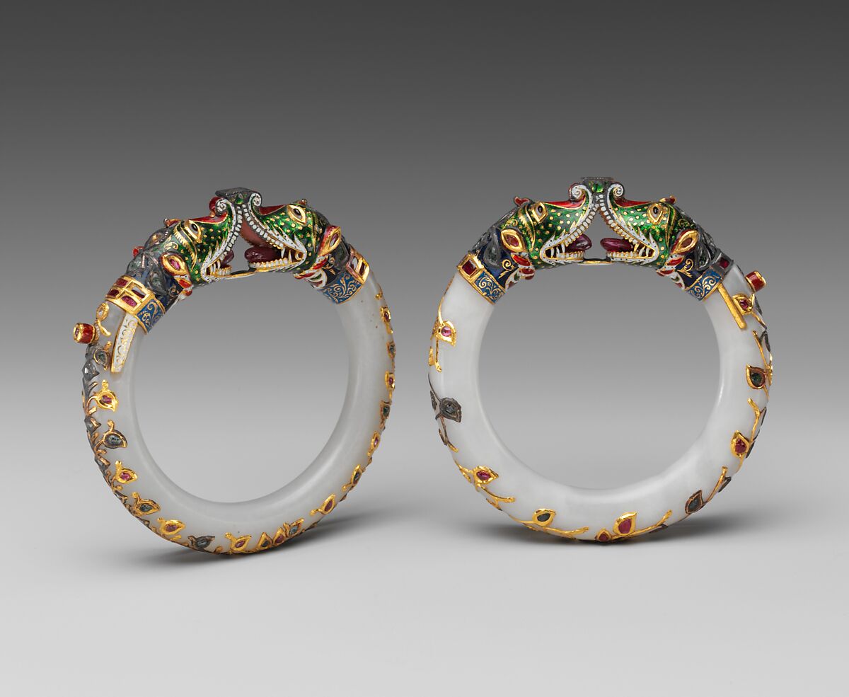 - Medium: Jade (nephrite) with gold, enamel, and stone inlays