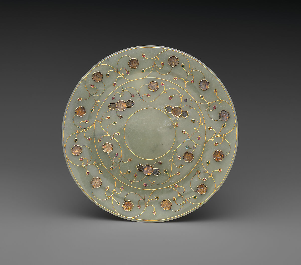 - 莫臥兒王朝 白玉嵌寶纏枝花紋盤