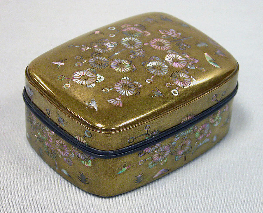- Medium: Gold hiramaki-e, mother-of-pearl and gold ground