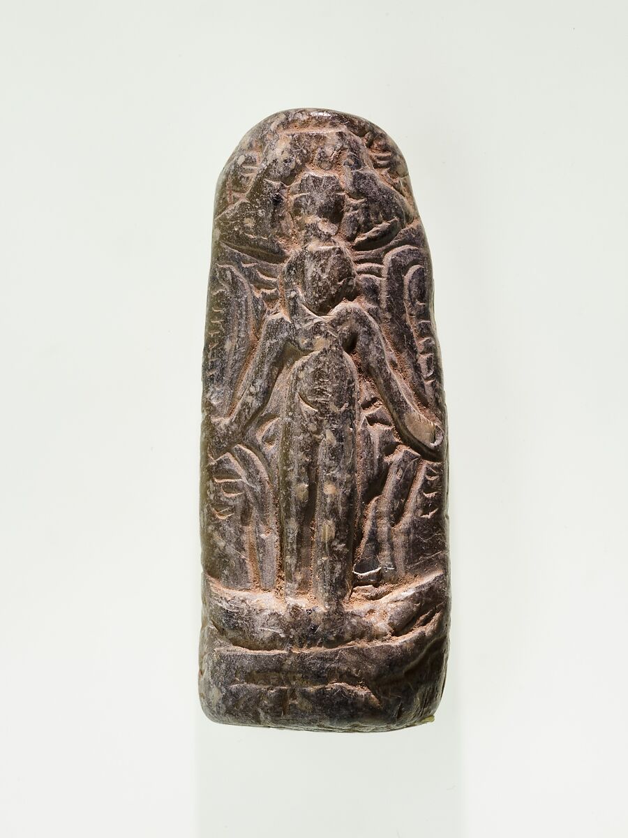 This small stela is representative of the genre of Egyptian art known as the cippus (plural, cippi) or magical stela. An image of the infant Horus on the front beneath a Bes-image is shown subduing dangerous animals. The Metternich Stela (acc. 50.85) is the largest and most elaborate example of the genre.