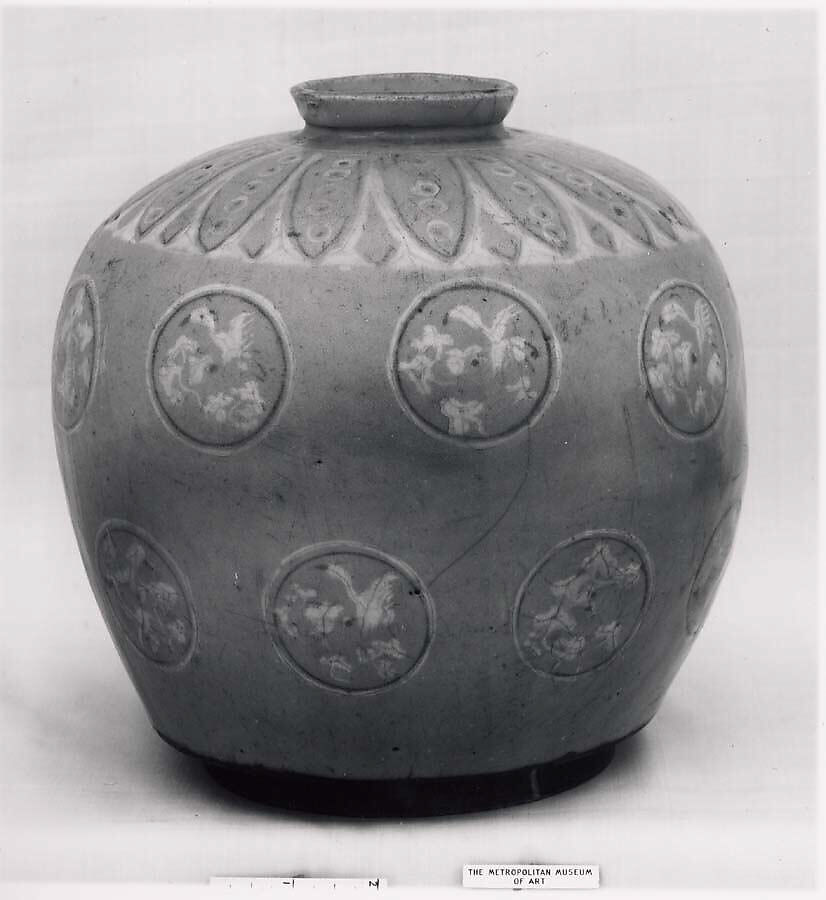 - Medium: Stoneware with inlaid decoration under celadon glaze