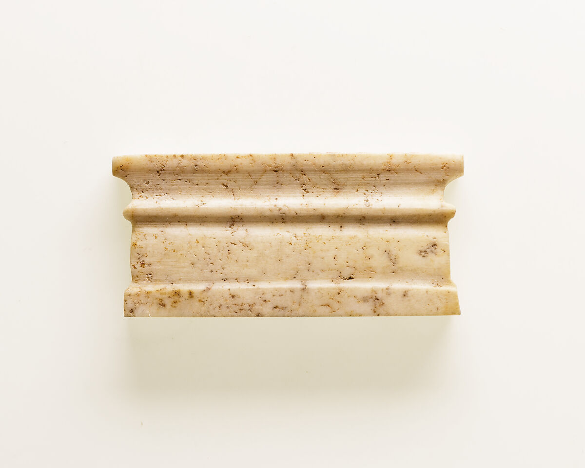 This inlay represents a shrine on which a jackal (see 22.3.55), perhaps representing the god of embalming, Anubis, or Wepwawet, the "Opener of the Ways," once lay.
