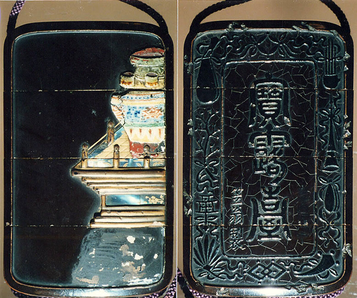 - Title: Case (Inrō) with Design taken from 'Fang Shi Mopu' (Book of Ink Cake Designs) (obverse); Large Jar on Stand (reverse)