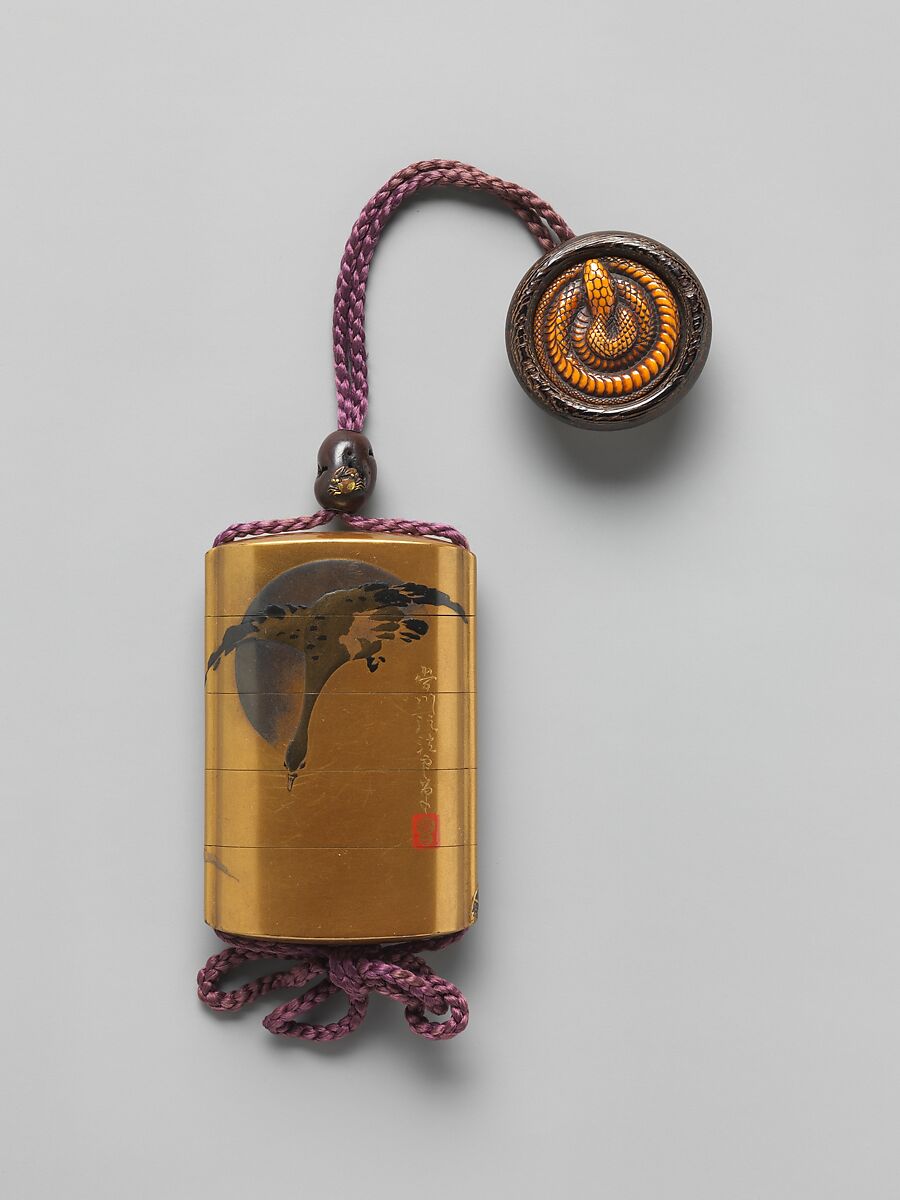 - Title: Inrō with Goose Flying across the Full Moon