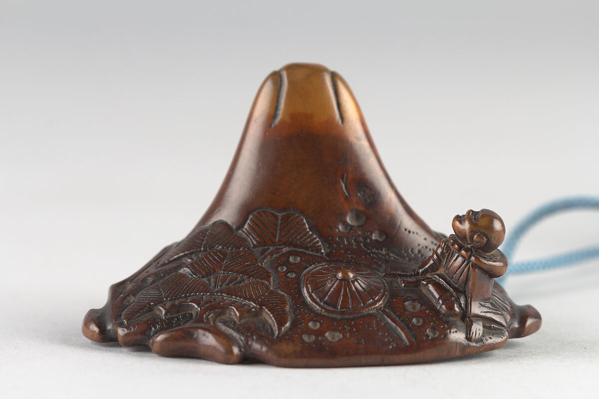 - Title: Netsuke in shape of Mount Fuji with Traveling Monk and Pine
