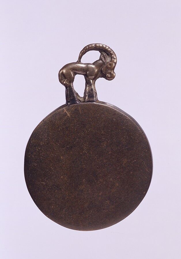 - Dimensions: H. 4 5/8 in. (11.7 cm); Diam. of mirror 3 1/4 in. (8.3 cm)