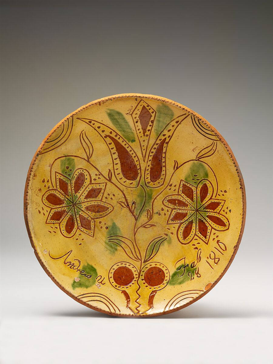 - Medium: Earthenware; Redware with sgraffito decoration