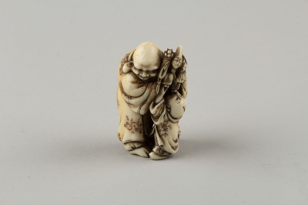 - Title: Netsuke of Man and Two Children with a Sambaso Dancer Puppet