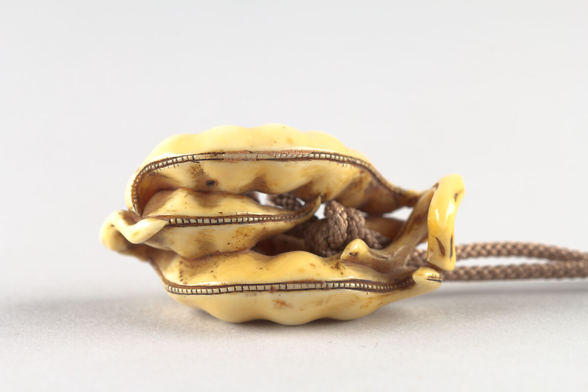 The lifelike pile of pea pods exemplify Moore’s interest in plant motifs.