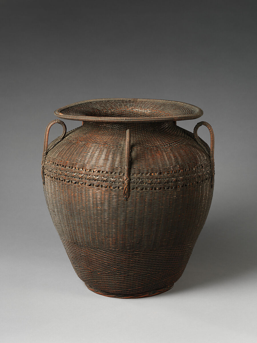 Shōkosai is believed to be the first master basket craftsman to sign his name to his compositions. This would also have verified that his Chinese-inspired (karamono) works were made by a Japanese individual. He concentrated mainly on tea utensils, reflecting the needs of participants in the period’s thriving sencha tea culture. Of the varied bamboo works Moore collected, most were made in the Osaka-Kyoto region around 1870–90, in the Chinese style, and relate to the sencha tea tradition or ikebana flower arranging.