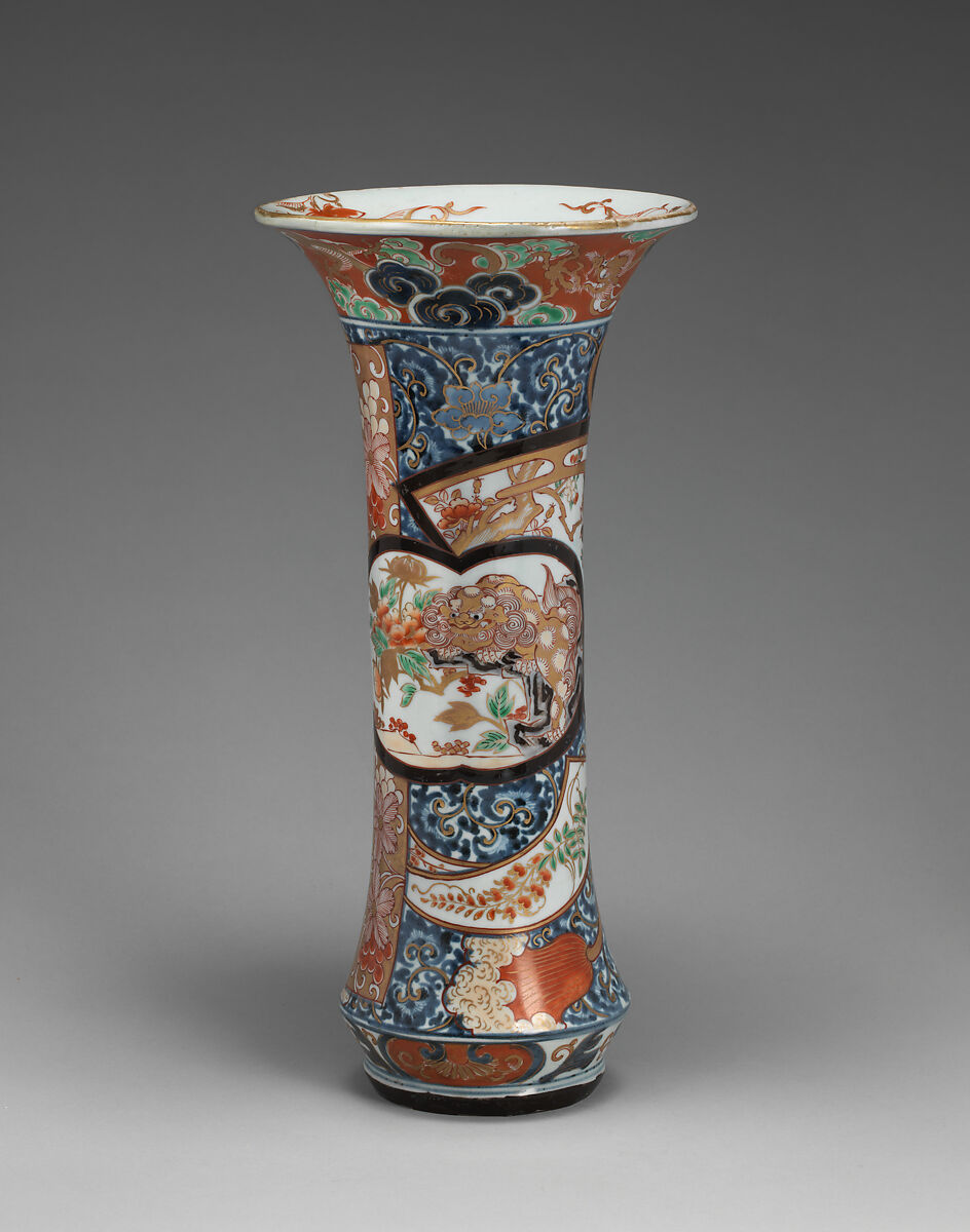 Japanese porcelain vases made for export were avidly sought by aristocratic and royal patrons to decorate their stately homes and palaces in the late seventeenth and early eighteenth centuries. While Chinese porcelains were exported to Europe and Britain in larger quantities during this period, Japanese porcelains were prized for their boldly patterned and richly colored decoration. The popularity of works such as these changed European taste for Asian porcelain, with a more vivid palette preferred over the blue and white decoration which once defined imported porcelains.