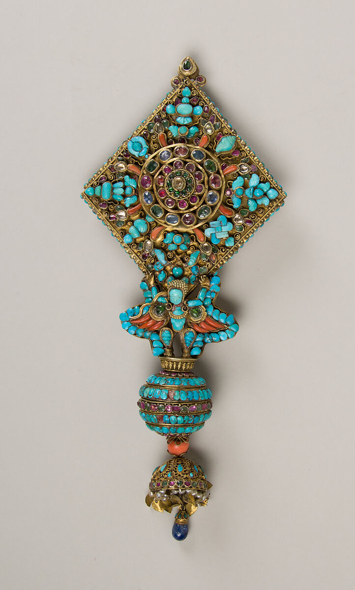 - Medium: Mercury, gilt silver, rubies, emeralds, sapphires, lapis lazuli, coral, pearls, and turquoise