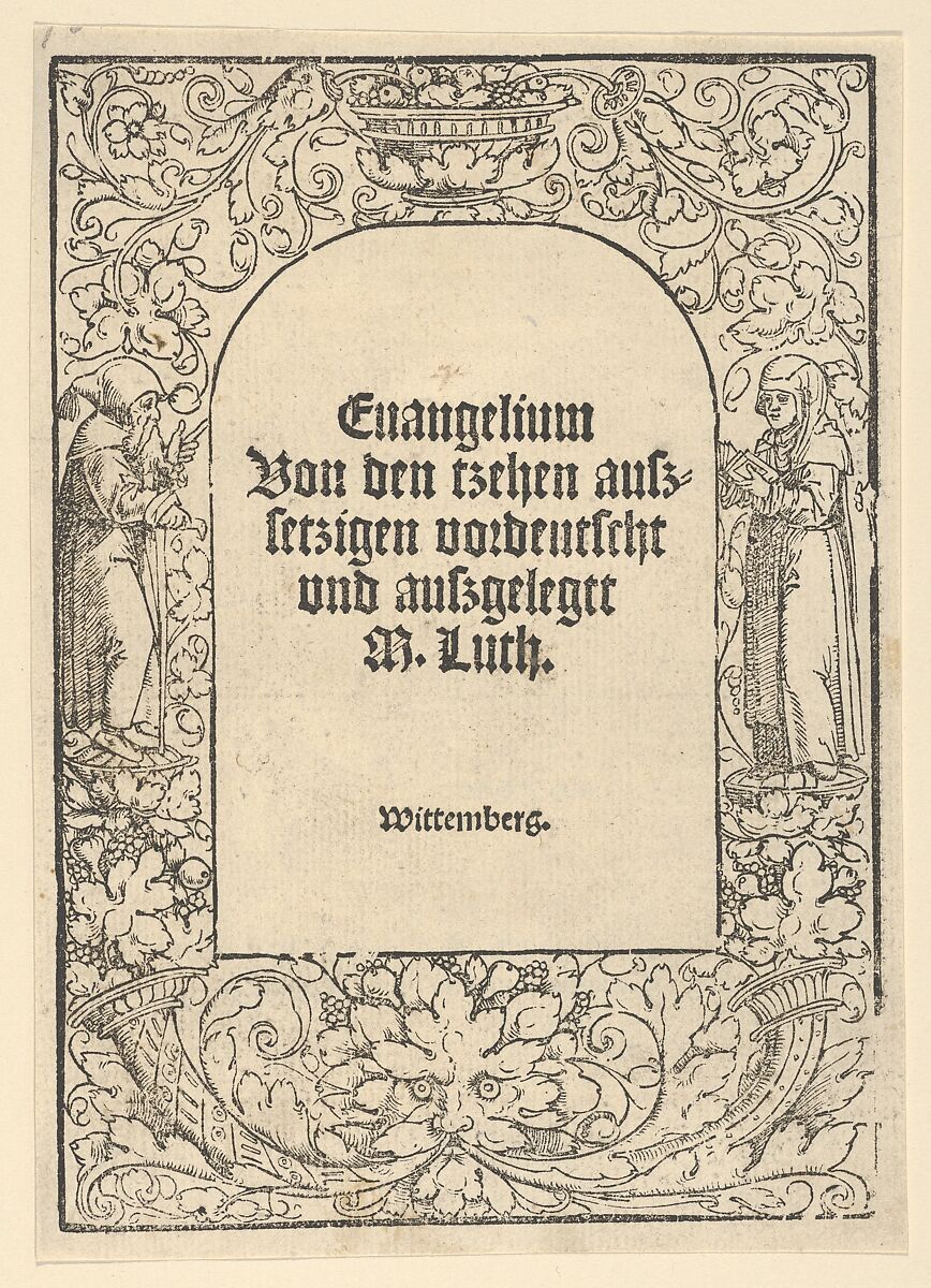 Title-Border with a Hermit and a Nun, Vase of Fruit, a Mask and Cornucopias