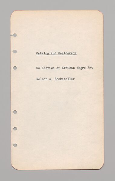 - Title: Catalog and Desiderata, Collection of African Negro Art, Nelson Rockefeller, Title Page.