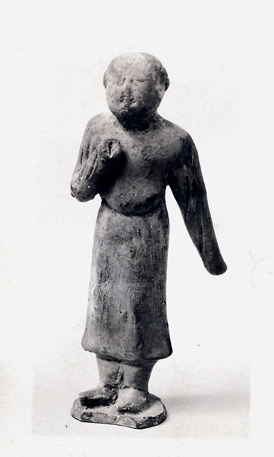 This figure and the others from the same ensemble (28.106.1-9) resemble the group of musicians and dancers excavated from the Tang dynasty Cen family tomb in Mengjin, Luoyang, Henan province.