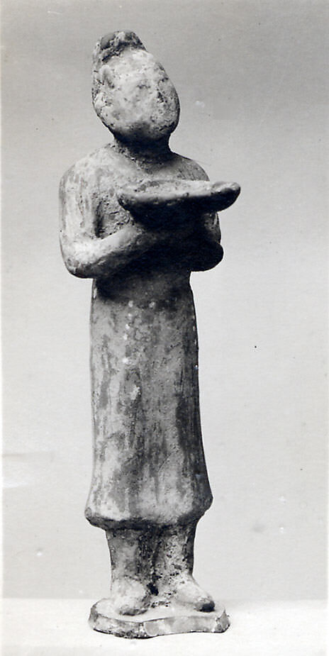 This figure and the others from the same ensemble (28.106.1-9) resemble the group of musicians and dancers excavated from the Tang dynasty Cen family tomb in Mengjin, Luoyang, Henan province.