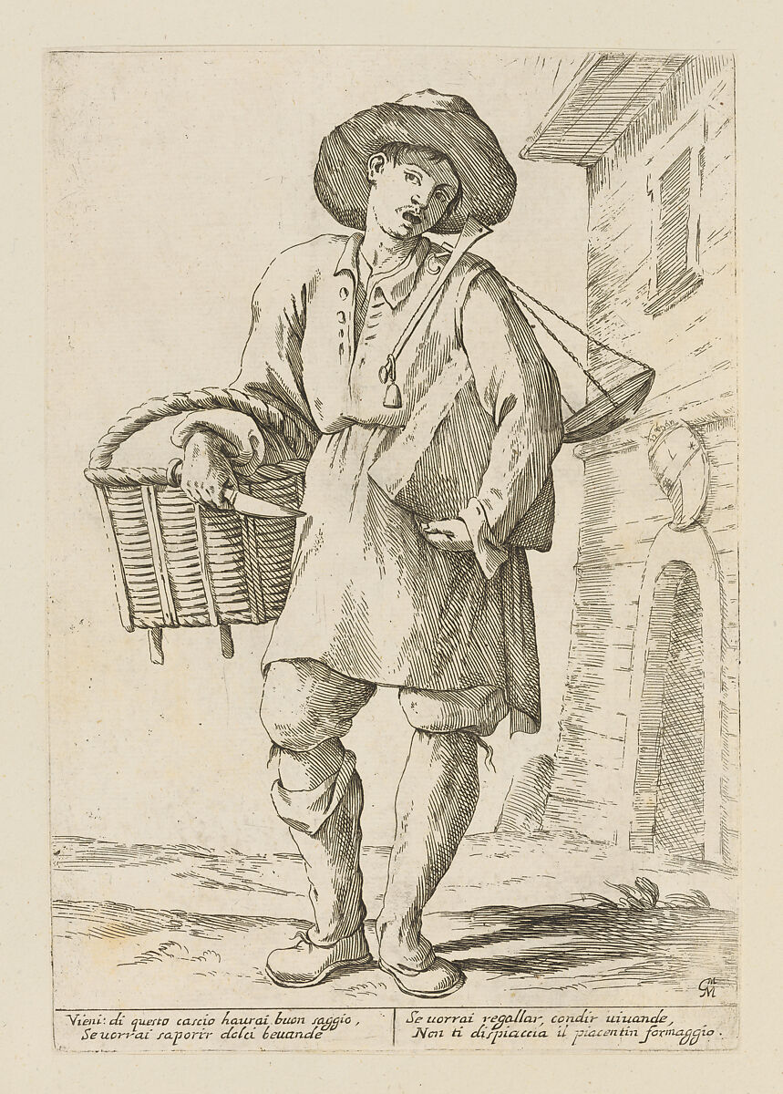 - Title: Cheese Vendor, from Di Bologna l'Arti per via D'An.ibal' Ca.rac, plate 3