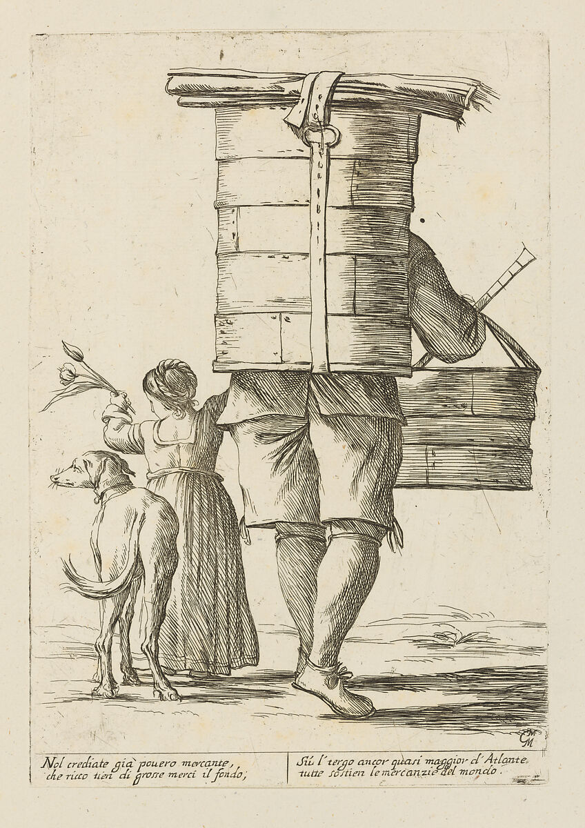 This print is from a series of 41 plates depicting Bolognese professions. This print is from the unnumbered first state published by Giovanni Giacomo De Rossi (Bertarelli).