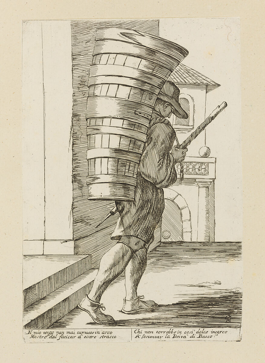 - Title: Man Carrying a Barrel of Wine, from Di Bologna l'Arti per via D'An.ibal' Ca.rac, plate 36
