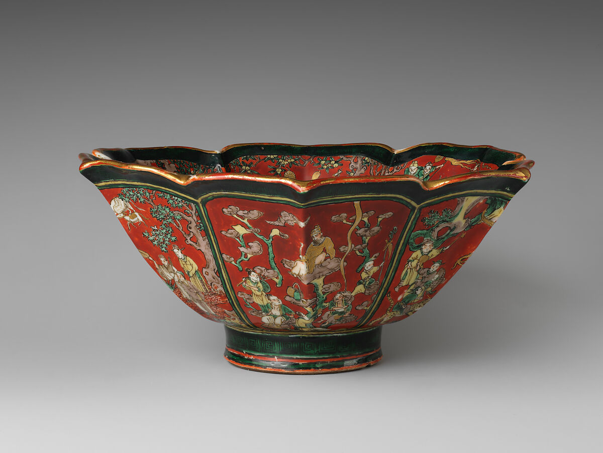 - Title: Hexagonal Foliated Bowl with Auspicious Chinese Themes and Sages