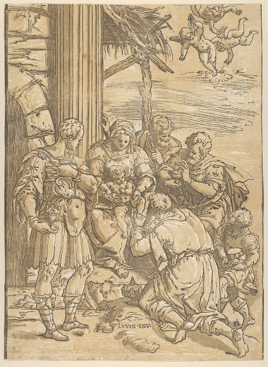 - Medium: Chiaroscuro woodcut from three blocks in pale brown
