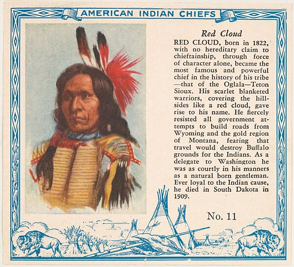 - Title: Card No. 11, Red Cloud, from the Indian Chiefs series (T129) issued by Red Man Chewing Tobacco