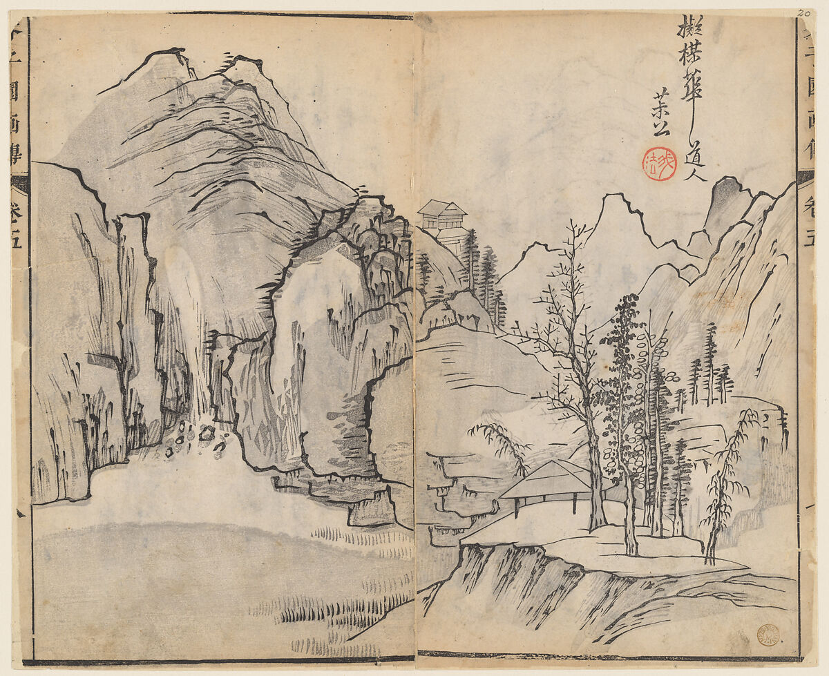 In 1679, the author Li Yu published a primer for aspiring landscape painters called the Mustard Seed Garden Manual of Painting, and he commissioned the versatile painter Wang Gai to provide designs for the illustrations. The first edition features volumes on the components of landscape painting—trees, rocks, and human figures—with instructions on how to draw different types of each. It also includes two volumes of landscapes in the styles of old masters, which show readers how to transform what they have learned into their own historically minded compositions.