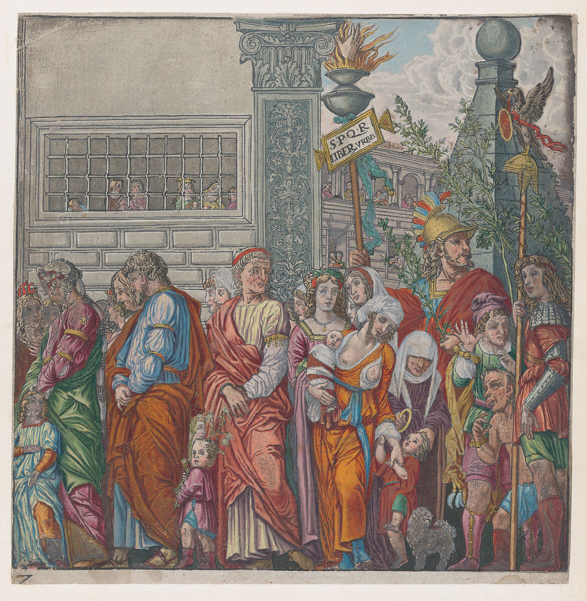 This print is from a scrapbook (album) containing woodcuts and chiaroscuro prints. It was presumably taken apart when it was acquired by The Met in 1922. On the front page of the volume there appeared a statement that this collection was made by the poet Samuel Rogers (1763-1855) and then bought by Angela Coutts (1816-1906) in memory of him at the sale of the collection at his house (28 April – 20 May, 1856). #1615a Rogers Sale. #146 Burdett Coutts Sale (Sotheby’s, May 1922). The prints from the original album have the range 22.73.3-1–22.73.3-161.