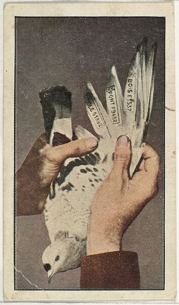 - Title: Card No. 74, Belgian Carrier Pigeon, With Its Message in Code, from the World War I Scenes series (T121) issued by Sweet Caporal Cigarettes