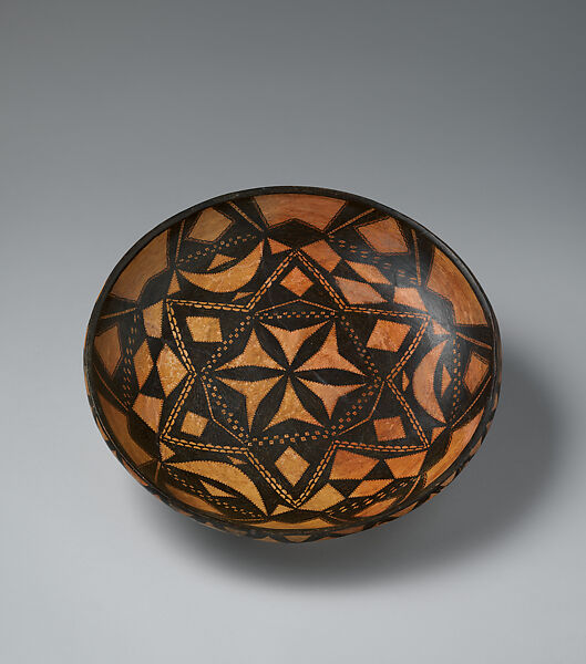 Crafted by women who pass along their knowledge generationally from mother to daughter, the decorated motifs are imbued with symbolic meanings. The names and meanings given to these motifs are open to personal interpretation, although they often highlight the importance of both supernatural protection and nature -- particularly fecundity -- in Berber tradition. The same patterns are found on a variety of surfaces and media, from woven textiles, and jewelry, to the tattoos embellishing women's skin. While ceramic wares are found throughout the Great and Small Kabylia regions, they present a range of regionally distinct styles. Research suggests that this platter, together with the other nine in the Met's collection, come from the Djurdjura region, south of Tizi Ouzou.