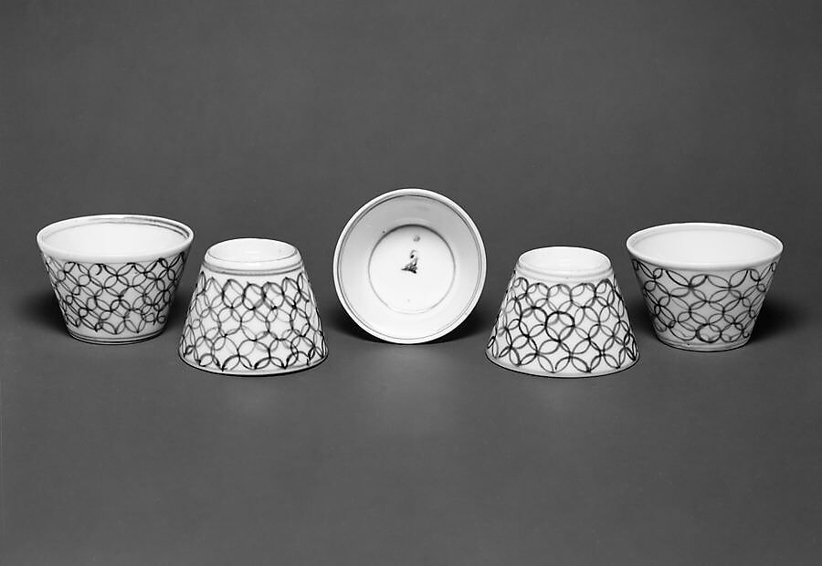 - Title: Set of Five Soba Cups (Soba choko) with Interlinked Circles (Shippō)