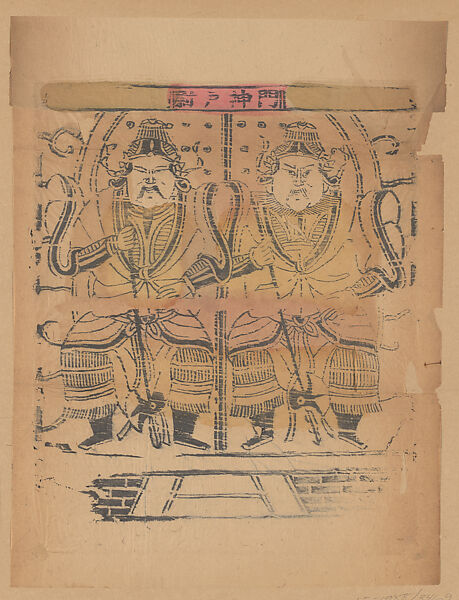 - 現代 佚名 雙人門神戶尉 木刻紙馬 北京